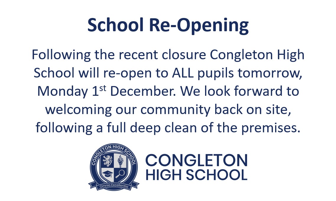 For information about joining the Congleton High School community in Year 7 or above, please see the 'Becoming a Student at CHS' page in the Parents and Carers section of this website. Click here to be redirected.